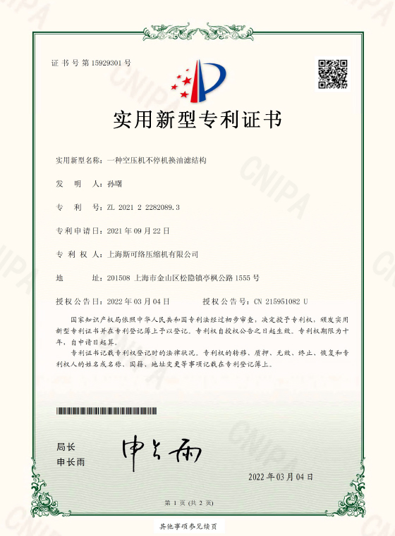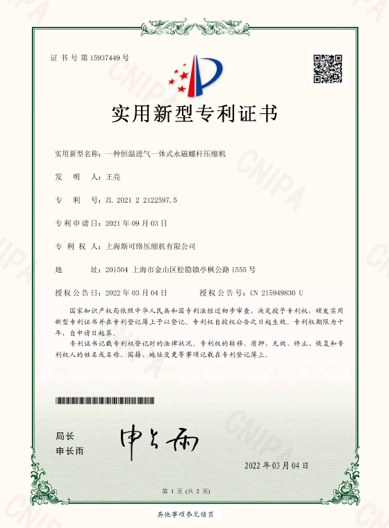 斯可络拥有20多年空压机行业经验的研发团队,掌握核心螺杆技术,基于德国日本技术持续自主创新,空压机产品通过欧盟CE美国UL、俄罗斯GOST、德国TUV CLASS 0等30多项全球认证。